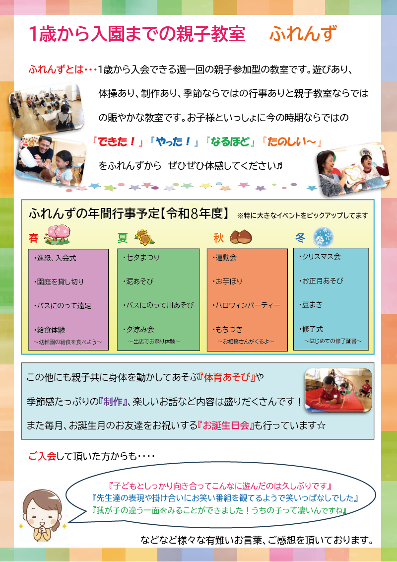 ふれんずは、基本的には週1回・月4回の活動ですが